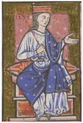 Left:Æthelflæd as depicted in the cartulary of Abingdon Abbey. © Art Collection 4 / Alamy Stock Photo.